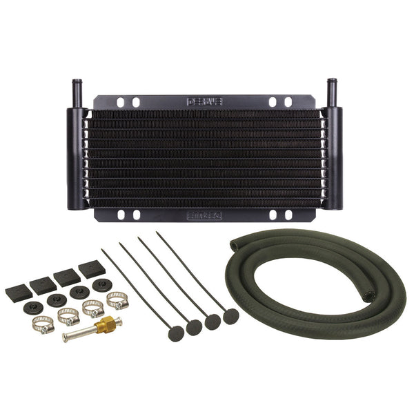 A step up from Tube & Fin type coolers, this Plate and Fin cooler features strong furnace-brazed construction, 7/8" wide plates, 3/4" embossed turbulators which maximize heat transfer while also minimizing pressure drop. This unit is perfect for light to medium duty use and occasional towing. It greatly extends transmission life by preventing heat-related transmission failures, and improve shifting performance. This kit comes with a complete transmission cooler hardware kit to easily install onto vehicles with 5/16" transmission cooler lines.