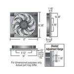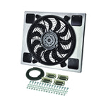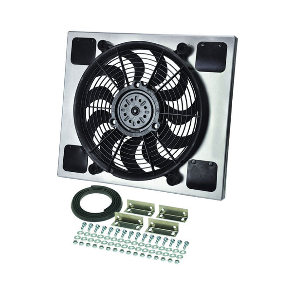 This High Output Single RAD Fan is part of the HO Aluminum Shrouded Fans Series designed with popular applications in mind. This assembly measures 17" wide by 16 3/8" top to bottom and only 2 3/4" thick to offer an adjustable yet precision fit. The raw aluminum shroud gives the user the freedom to polish, anodize, paint, or simply leave it natural to create a truly custom look for an affordable price. The 14" high output two speed fan is one of the best in our line-up offering 2100 CFM when on high to create the most airflow possible in a compact size.
