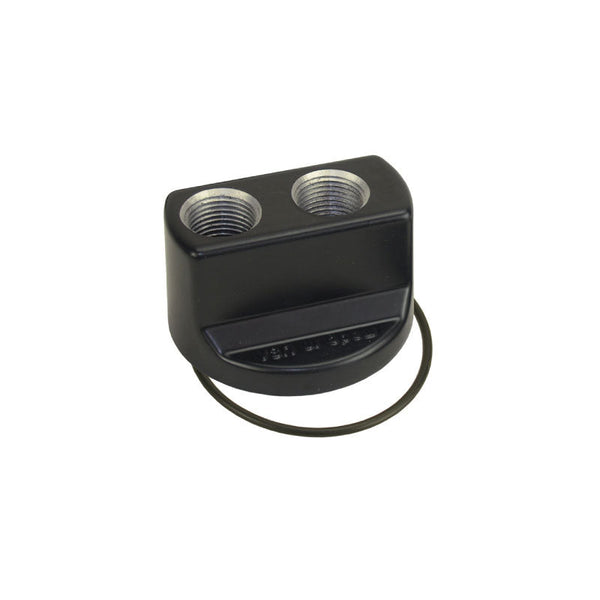 High quality die-cast aluminium spin-on adaptors boast a billet look at a reasonable price. With -10AN (7/8”-14) O-ring ports and a ¾”-16 thread size, this Premium Series adaptor fits 2-1/2” to 2-3/4” engine filter landings. It provides external oil lines to allow the addition of an engine oil cooler and/or remote filter mount, installing at the stock engine oil filter location, In a durable black powder coat finish.
