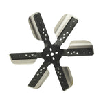 This fan provides maximum airflow and cooling at low RPM when vehicle speeds provide little or no air through the radiator. As vehicle speed and engine RPM increase, it provides ample airflow and the fan blades flatten to minimise engine loading, increasing horsepower and fuel economy.