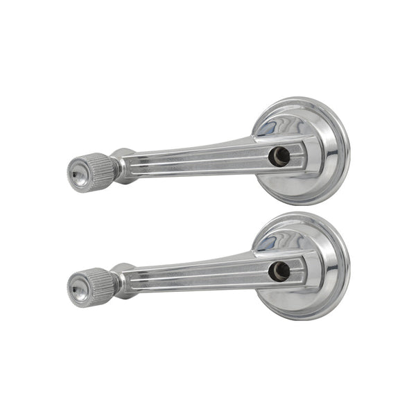 Billet aluminium Polished then chromed Sold in pairs Alloy splines and 2 set screws for installation including Allen key tool Size approximately 3-7/8” in length measuring from centre of spline...