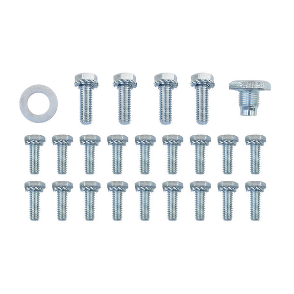When installing a new oil pan you might want new bolts for that final touch. Torco Oil Pan Bolts are machined from quality heat-treated steel to meet OE specifications. Bolts have hex heads and external tooth lock washers.