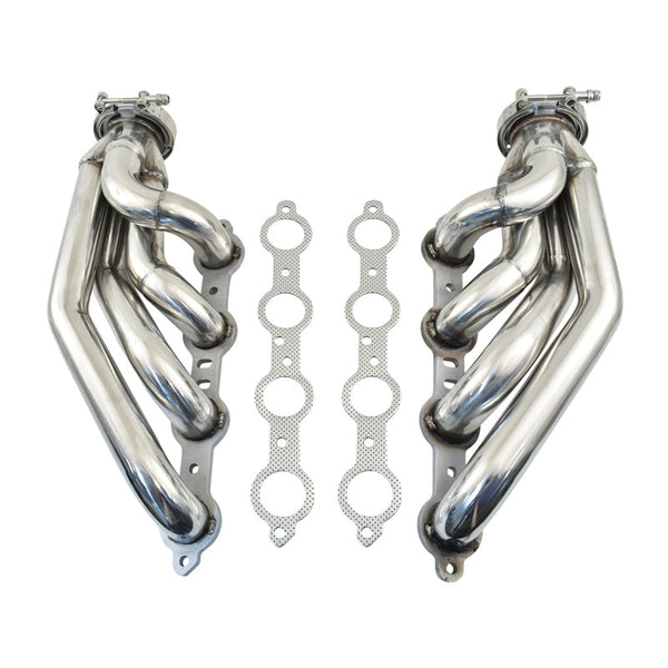 • The header set includes 2 manifolds, 2 exhaust manifold flanges, 1 bolt & stud kit