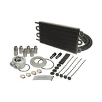 Perfect for stock to mild street use, this universal 6 pass high capacity copper tube/aluminum fin engine oil cooler kit can not only reduce oil temperatures to help extend the life of lower end components and oil life, it also helps reduce coolant temperatures. This universal kit comes with a complete installation kit to install easily on most vehicle engines. Made in the USA.