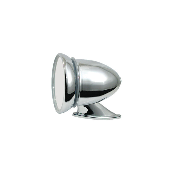 Lightweight design Flat lens Chrome aluminium housing (not plastic). Zinc base. Single bolt mounting Classic 1960s style racing mirror Can be mounted onto doors or front fenders Complete with mounting...