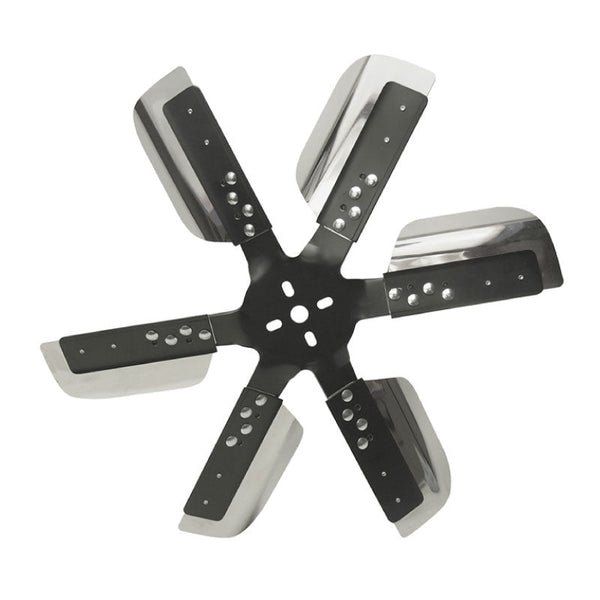 Rated up to 10,000 RPM, this 19” diameter heavy duty standard rotation fan features thick black steel hubs and 6 stainless reinforced blades with a large surface area that improves engine performance.