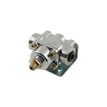 Adjustable Fuel Pressure Regulator 4½ to 9 PSI Single 3/8” NPT inlet and two 3/8” NPT outlets Supplied with mounting bracket Note: Black & Chrome finish but not to show...