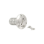 High quality mirror chrome finish Spring loaded flip cover and retaining lever Beautiful casting Perfect addition to your classic car 90mm diameter top cover 57mm fitting hole Will accommodate fuel...
