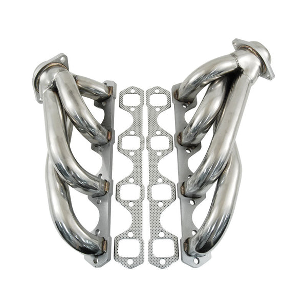 Rear exit design suited for tight spaces The header set includes 2 exhaust manifold gaskets, 1 bolt kit