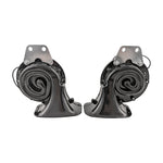 - Features 2 cast zinc horns (not plastic), one high and one low frequency