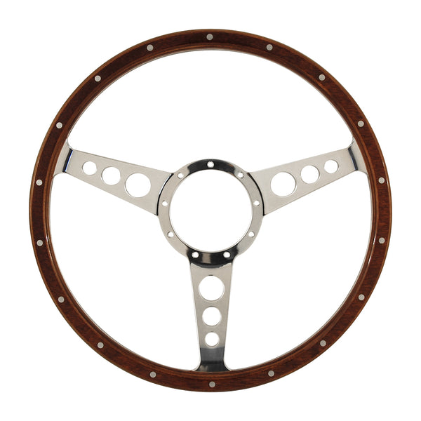 Classic Series 15” x 2” Dish Laminated 9 Bolt Wood Rim Steering Wheel – Spokes with Round Lightening Holes