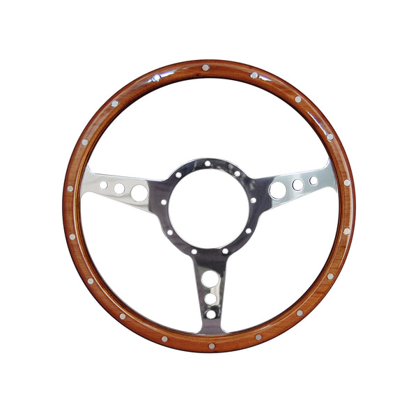 Classic Series 13” Flat Laminated 9 Bolt Wood Rim Steering Wheel - Spokes with Round Lightening Holes
