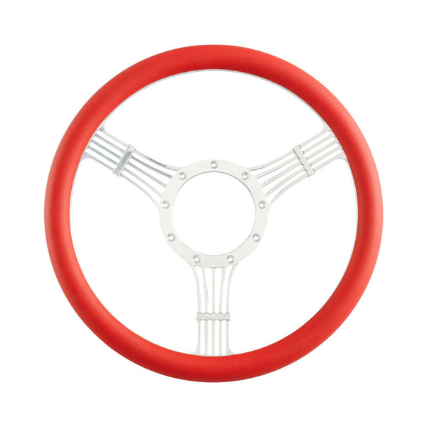 This listing is for the Billet Steering Wheel with Half-Wrap of Red