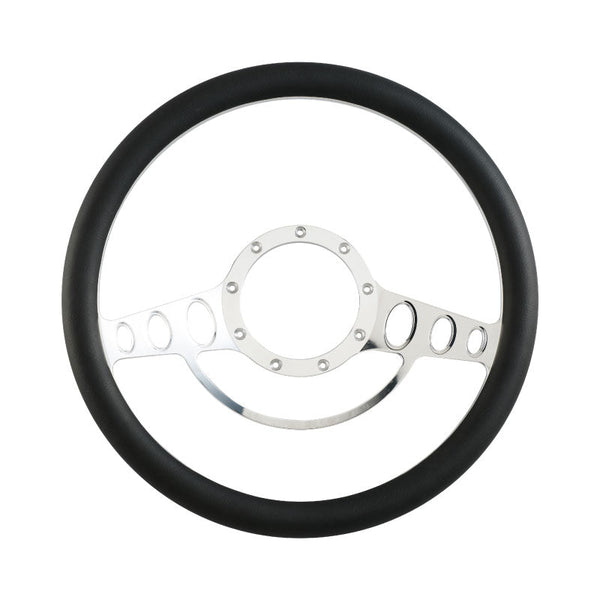 1. Leather half-wrap billet steering wheel. Note all Performance Warehouse steering wheels of this type are supplied with the half-wrap professionally fitted to the billet profile steering wheel.