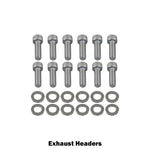 Suits Small Block Chevy engines: 265, 283, 302, 305, 327, 350, 400 Exhaust header bolt and washer kit Allen head bolts allow for easier installation when dealing with tight spaces,...