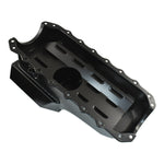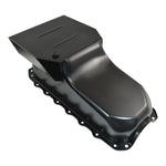 Steel factory replacement style oil pan to suit 1955-1979 Small Block Chevrolet engines 305, 307, 327, 350, 400 cubic inch with 2 piece rear main seal, passenger side dipstick. 4...