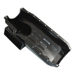 Steel factory replacement style oil pan to suit 1955-1979 Small Block Chevrolet engines 305, 307, 327, 350, 400 cubic inch with 2 piece rear main seal, passenger side dipstick. 4...