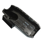 Steel factory replacement style oil pan to suit 1955-1979 Small Block Chevrolet engines 305, 307, 327, 350, 400 cubic inch with 2 piece rear main seal, passenger side dipstick. 4...