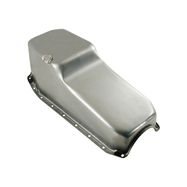 • Steel factory replacement style oil pan to suit 1980-1984 Small Block Chevrolet 350 engine with 2 piece rear main seal, driver side (right-hand) dipstick.