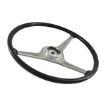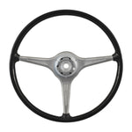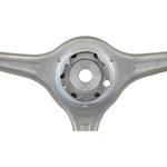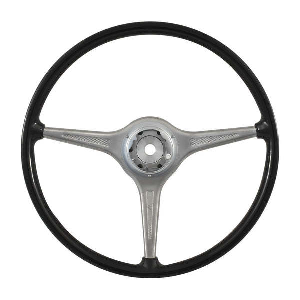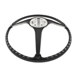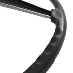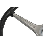 - The frame and spokes of this steering wheel are made of premium quality aluminium, the rear of which is black powder coated to prevent windscreen reflections. The underside of the black rim has finger indentations for an excellent grip and feel.