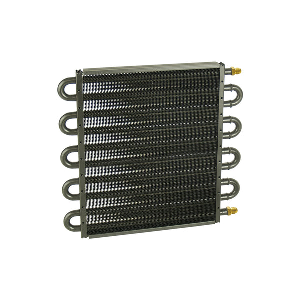 This Tube & Fin cooler features 1/2" copper tubing expanded into aluminum cooling fins. It is built with -6AN inlets and can be used as a transmission cooler, power steering or fuel cooler with equal efficiency. No mounting hardware included.