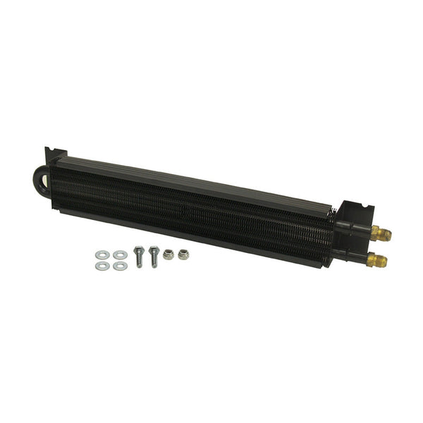 With the same ½" copper tubing expanded into aluminum cooling fins, this cooler uses a slim design to enable frame mounting in limited space applications. It includes -6AN inlets and can be used as a transmission/trans cooler, power steering or fuel cooler with equal efficiency. Includes mounting hardware only.