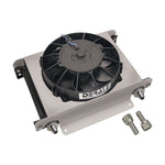Equipped with our top of the line 25 row stacked plate cooler, the Hyper-Cool remote cooler can be installed anywhere available space will allow, making it a popular addition for performance cars, hot rods, muscle cars and trucks. Our Stacked Plate cooler coupled with an 8" Tornado fan and aluminum shroud, it comes with -6AN male fittings and -6AN x 3/8" barb adapters. The Hyper-Cool is perfect for extreme duty towing and hauling and can add years to the life of your transmission as a trans cooler. Also recommended for power steering and fuel cooling.