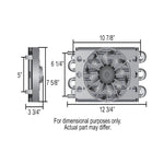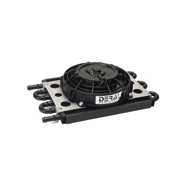 With an efficient copper tube/aluminum cooling fin cooler being supplied air by a 7" Tornado electric fan, this value priced remote cooler comes with 11/32" hose barb inlets and is recommended for light duty towing and hauling or when pulling consistent grades. A great addition to compact cars and smaller SUVs that will add years to the life of a transmission at a reasonable price. Also recommended for power steering and fuel cooling. No mounting hardware included. Made in USA.