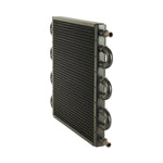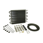 This Tube & Fin Transmission Cooler features ½” copper tubing expanded into aluminium cooling fins and includes embossed turbulators which serve to agitate fluid for maximum heat transfer. This is a medium square push on model. Perfect for medium sized cars and compact trucks and SUVs that see light duty towing, they improve shifting performance and extend the life of the transmission by eliminating heat related transmission failures. This kit comes with a complete transmission/trans cooler hardware kit to easily install onto vehicles with 5/16” transmission cooler lines.