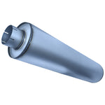 • Straight through design with no baffles. Perforated inner tube surrounded with acoustic packing