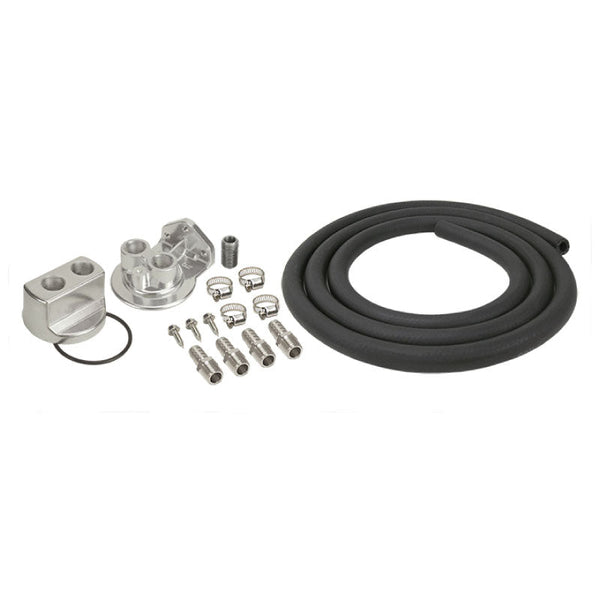 Derale Oil Filter Relocation Kit allows the oil filter to be relocated. Includes a high quality, die-cast aluminium ½” NPT ports up filter mount and 20mm x 1.5mm threaded spin-on adaptor. Filter mount uses Fram PH8A Oil Filter or equivalent.